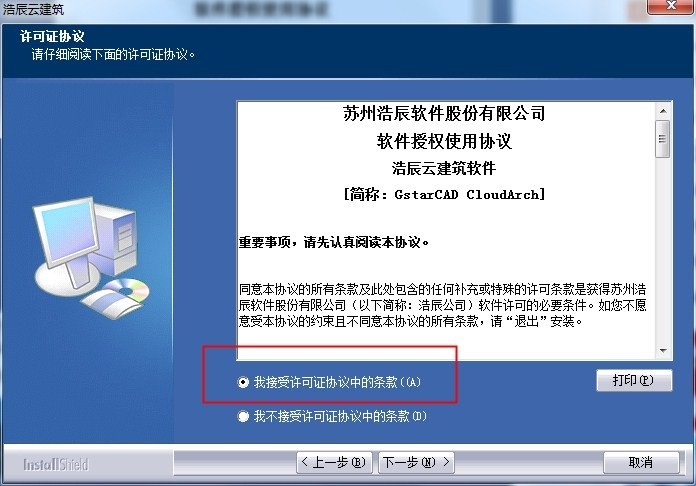 2、在许可证协议页面阅读完条款后选择“我接受许可证协议中的条款”,点击下一步