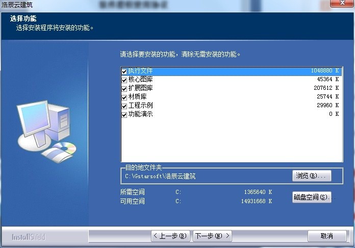 3、选择安装位置,同时根据自身需求选择安装功能组件,需要安装的前面勾选即可,选择完成后点击下一步