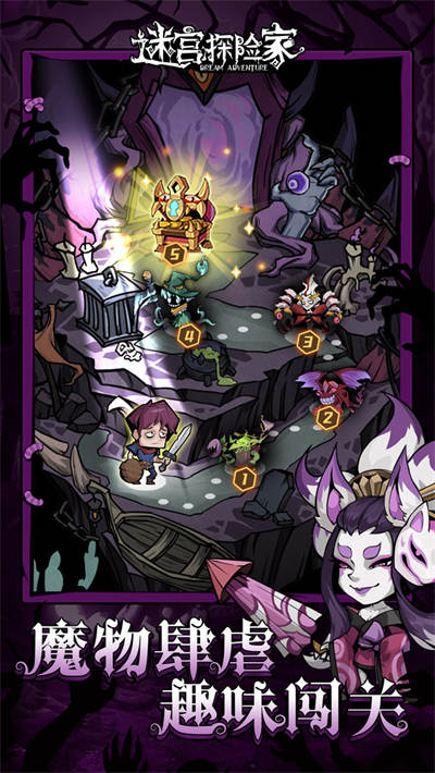 迷宫探险家游戏是一款黑暗荒诞风格的逆向塔防RPG,勇者被卷入魔王创造的奇幻世界中,在魔王的无尽的迷宫中通过布置不同功能的建筑,击败各种可怕的怪物,努力战胜一个个迷宫梦魇,最终击败魔王逃出迷宫。