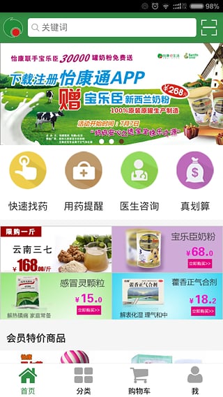 怡康通是由西安怡康医药有限责任公司推出的一款集购药、咨询、健康教育等功能于一体的线上O2O平台,该平台不仅旨在为用户提供丰富的医疗产品和生活用品,还旨在为用户提供粮油、生鲜、订餐等一系列生活服务……怡康通,家人的健康和生活助手!