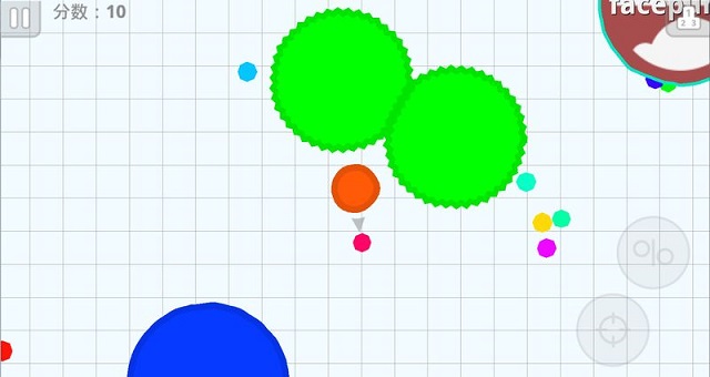 《细胞吞噬 Agar.io》是一款在线游戏,可以和全世界的玩家一起玩。如果进不去的玩家,请挂VPN尝试。玩家控制一个细胞,一开始只是一个小小的细胞,在一堆大大的细胞里面生存,吃地图上的小圆点(营养?)。稍微长大一点之后就可以跑去吃较大的细胞,不断变大变大,最终尝试称霸整个地图。然而有个大问题:你并不是一个人(细胞)。你要和数千名其他玩家一起在地图上争夺资源和其他比你弱的其他玩家。你有一个优势:细胞体型越小跑得越快。你有一个劣势:体型超过50的细胞可以分裂成两个,而且分裂的方式是直接飞出一半砸到你脸上……所以玩家就需要看好位置来吃营养和其他细胞,尽量在满布玩家的地图里熬出一片天。