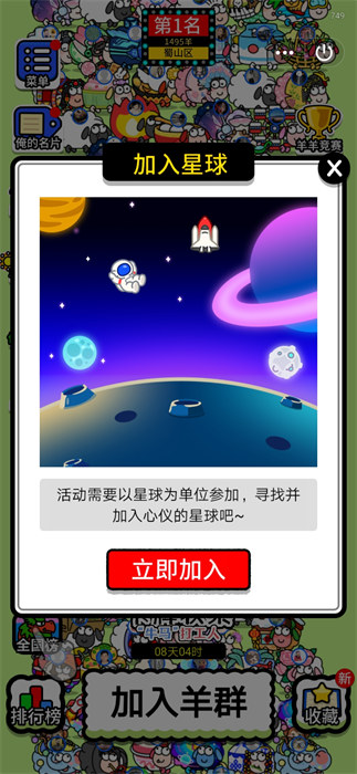 5、能够去选择自己想要的星球进行加入的操作,加入到星球之后可以参与各种活动。