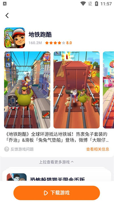 4、注册完成之后,只需要点击想要下载的游戏,在游戏的详情界面中,点击下载就可以下载游戏体验。