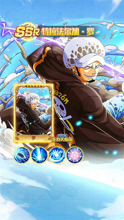 航海王顶上战争游戏是一款非常精彩的由动漫改编的卡牌游戏,在这里,玩家可以重温经典的动漫剧情,收集自己喜爱的动漫角色的卡牌,并给卡牌升级,带领众多角色一起冒险闯关,打怪升级,创造一个特别的游戏世界。