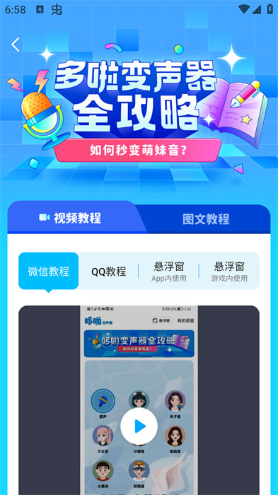 - 悬浮窗设置,支持用户设置悬浮窗,可以随时都随地的改变自己的声音,与好友聊天时也会非常的有趣。
