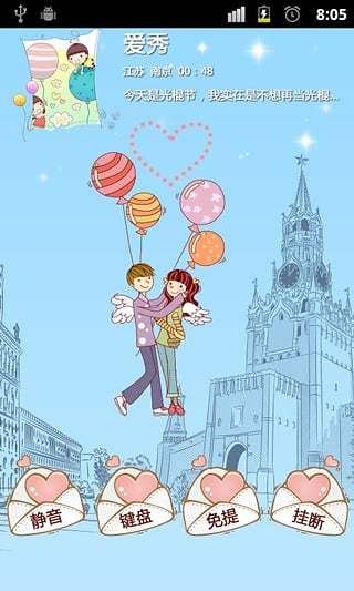 爱秀来电秀不仅可以定制私人个性通话主题,同时还能设置丰富时尚的图文通话签名,在通话过程中在个人手机上启动通话主题,同步与对方及时分享图片、文字、动漫表情等多媒体互动信息。