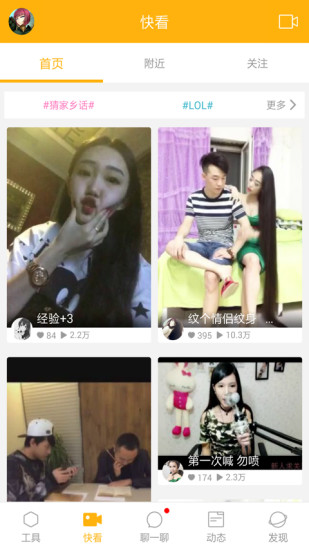 快看小视频:无论是用多玩饭盒拍摄的原创视频,还是网上下载的视频,都可以展示在我们快看的大舞台。
