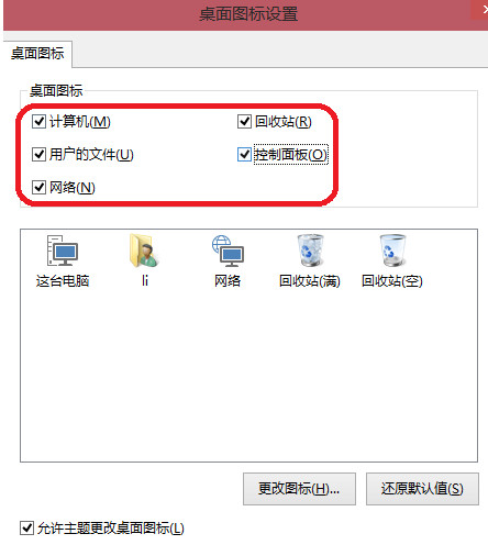 3、选择更改桌面图标,也可以自定义选择修改图标。