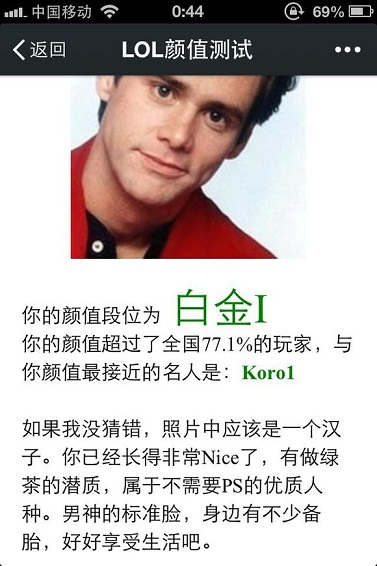 lol颜值测试软件是一款非常有趣的“颜值”测试工具。软件会根据你所放的照片,来评论你的“颜值”。包括你颜值所在段位,颜值在全国玩家中的排名,及与你颜值最接近的玩家等。软件还会对你颜值进行一些评论,写一些非常搞笑的话。赶快下载体验吧!