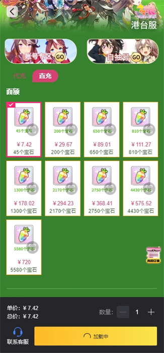 1、打开上方链接,然后就会进入到一个充值平台,在平台中会有超多代充礼包可以选择;