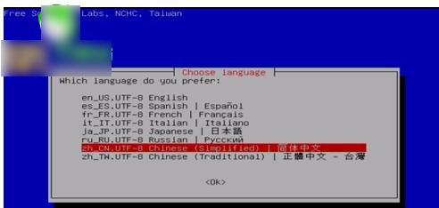 在使用语言菜单中选择"zh_CN.UTF-8Chinese(Simplified)| 简体中文"。