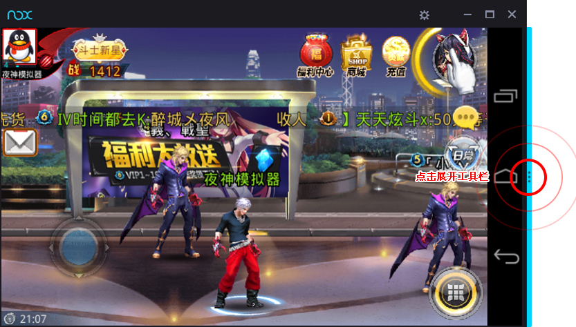 ①以天天炫斗为例,设置如下图所示:点击右侧处,打开隐藏功能菜单