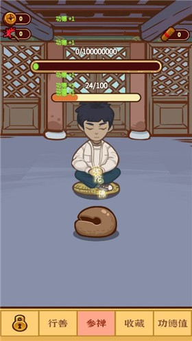 2、玩家在游戏中可以轻松地与手机互动,每次点击屏幕就能发出一种非常磐静、悠扬的木鱼声;