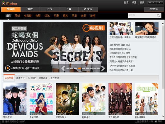 itudou(爱土豆客户端)可以用来下载上传视频,还可以将下载后的视频文件转换格式,就可以将视频放在手机、psp、mp4等各类手持移动多媒体上播放观看。