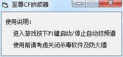 游戏介绍 游戏标签: cf挤频器 挤频 cf 至尊cf挤频器是最新的cf挤频器,本工具绿色小巧无需安装,打开即可以帮助你挤频道,支持穿越火线的正服和体验服,大区频道的人数再满也可以挤进去,具有挤频速度快速的特点。进入游戏,只需一键一键全自动开启挤频,彻底帮助玩家解决挤频问题,让你面对那些拥挤的频道都能顺利快速进入,非常实用的一款CF穿越火线小工具,有需要cfer们赶紧下载吧。使用说明:进入游戏按下F1键启动/停止自动挤频道使用前请考虑关闭杀毒软件及防火墙 游戏截图 上一张下一张(1 / 1) 安装详细截图 猜你喜欢 cf挤频器 cf挤频器 cf挤频器哪个好用?cf挤频器最新版在哪里下?在这里都可以找到答案,cf挤频器目前最受玩家欢迎的要是最新的1234cf挤频器下载搜索最多,当然经典版的小编还是推荐CF天神挤频器,职业和高玩们都用的这个,使用本专题的cf挤频器不会封号。 查看更多>> cf东方丽羽挤频器win10 405KB/中文/7.2/v2017.2.0 绿色免费版下载 优软CF挤频器 664KB/中文/6.6/v8.0 免费版下载 cf东方丽羽挤频器 405KB/中文/8.1/2017最新版下载 至尊cf挤频器 333KB/中文/10.0/v1.1 最新版下载 麦兜cf挤频器 275KB/中文/10.0/v1.0 绿色版下载 cf关公体验服挤频器 108KB/中文/5.0/v0.2 绿色版下载 其他版本下载 标题 大小 更新日期 下载 下载地址 电脑版 至尊cf挤频器 v1.1 最新版 点击报错 软件无法下载或下载后无法使用,请点击报错,谢谢! 关闭报错反馈 请描述您所遇到的错误,我们将尽快予以修正,谢谢! *必填项,请输入内容 本类最新 美食大战老鼠小迪辅助 v8.2 最新免费版 4399洛克王国东哥辅助最新版 v13.09 全能版 英雄无敌3地图编辑器中文版 v1.1 汉化版 炉石团子hdt插件 v0.9.3 最新版 魔兽世界网易有爱插件 v3.4.2.32834 官方版 我的世界hmcl启动器 v3.5.2.216 最新版 用户评论 热门评论 最新评论 发表评论 查看所有评论(0) 昵称: 请不要评论无意义或脏话,我们所有评论会有人工审核. 字数: 0/500 (您的评论需要经过审核才能显示)