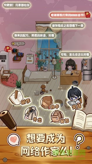 3、简单的玩法,休闲的游戏模式,不用伤肝也可以享受到作家生活的点点滴滴。