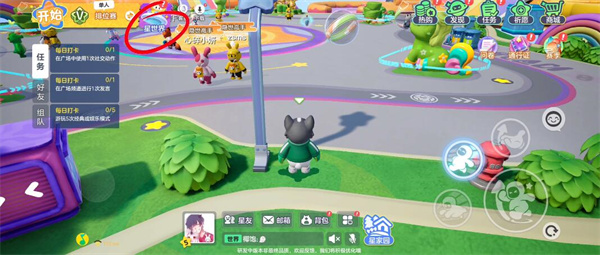 1、想要自制地图就需要进入游戏,在游戏界面点击左上角的【星世界】进入到地图功能界面之中;