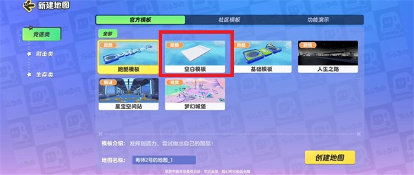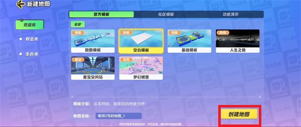 2、在星世界界面中,点击右下角的【新建地图】,进入到选择地图界面,建立一个空白的地图;