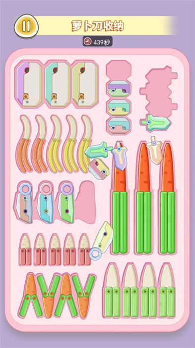 ①、每一把萝卜刀都有一个对应的凹槽,需要将萝卜刀放置到相应的凹槽中。