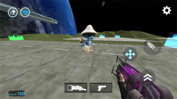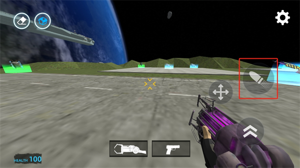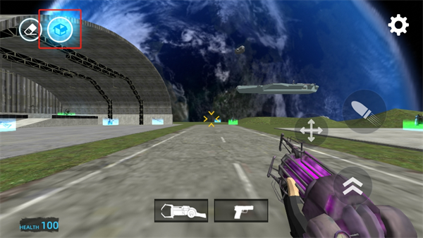 3、选择后回到场景中,将手枪的瞄准镜瞄准到想要放置的位置,并点击子弹按钮;
