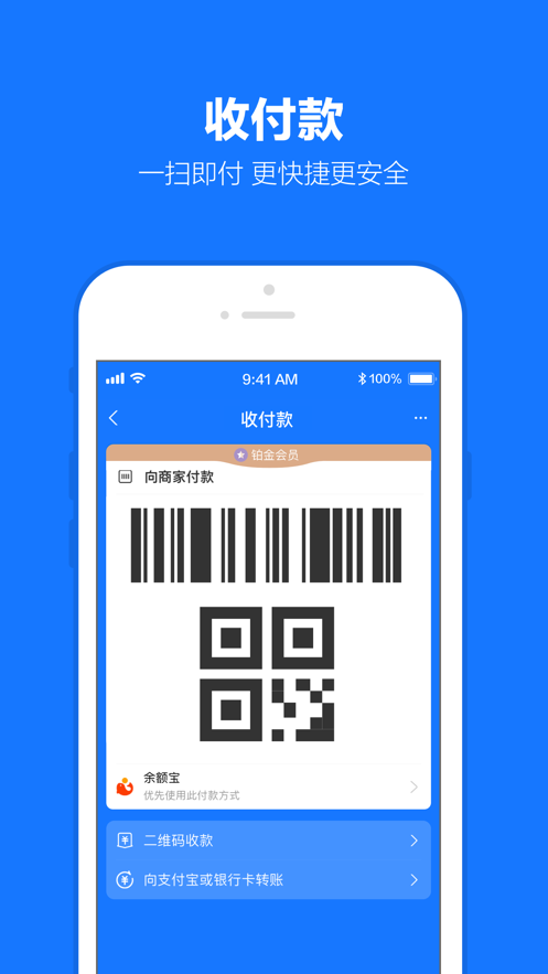 5.条码支付:生成条码与二维码,等待对方扫描后,轻松实现交易付款;