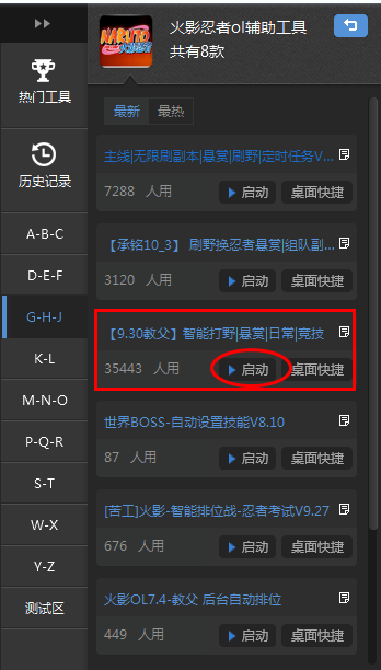 4.在火影忍者OL辅助工具中“启动”“火影忍者ol【教父】打野|悬赏|副本|竞技场”