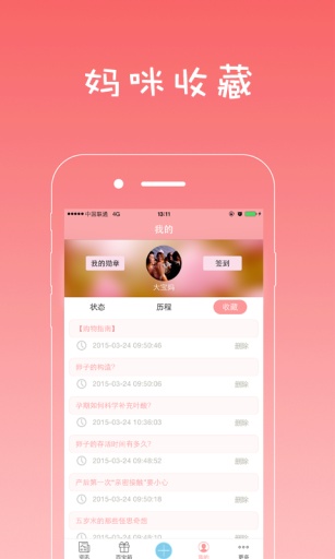 在个人中心妈妈们可以发表的育儿趣闻和感想,随时、随地和网友互动交流,记录自己幸福的育儿过程。