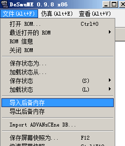 运行DeSmuME,打开游戏,选择导入后备内存