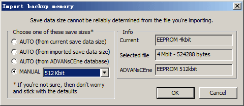 如图,选择MANUAL(手动) 512Kbit 导入即可