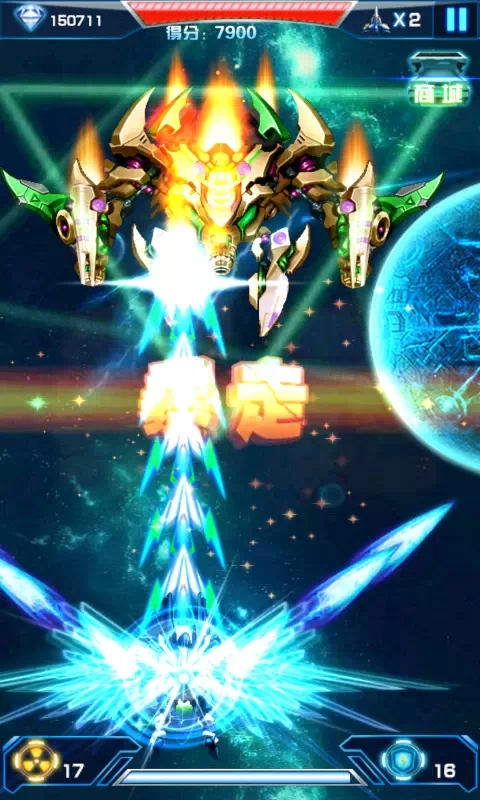 3、采用经典纵版2D界面的一款飞行射击游戏。