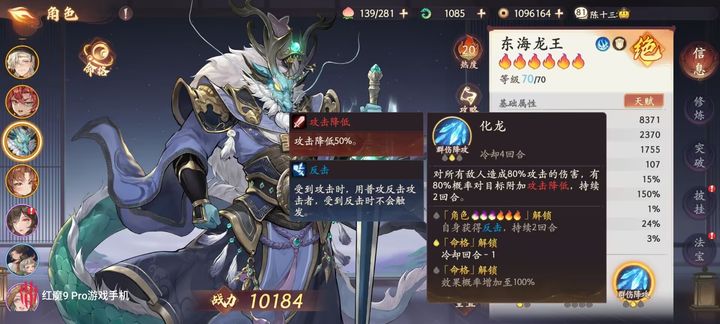 这里小白龙是核心输出,命格解锁50%反击,三星解锁雨刺,而其他都是为他服务的,算是极致四保一阵容,其中巨灵被动分摊伤害,地藏减防,女儿国主加防加血,东海龙王抗揍,三星东海龙王解锁反击,小熊加肉盾。PS:三星龙王可替换成三星阎罗,这里看个人运气而定,配图因为我没有东海和阎罗,所以用了托塔代替一下。