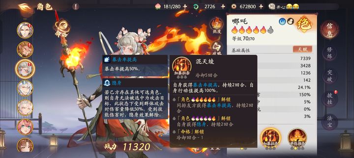 这里,核心是游戏自送的高星猴哥,配合一星哪吒,解锁同排暴击加成,然后在配合地藏减防收割,前排熊和孔雀减冷却加盾,至于备用小白鼠可以替换成加强收割的嫦娥,又或是换成走一速流玉面狐狸,这样PK剧情两不耽误。
