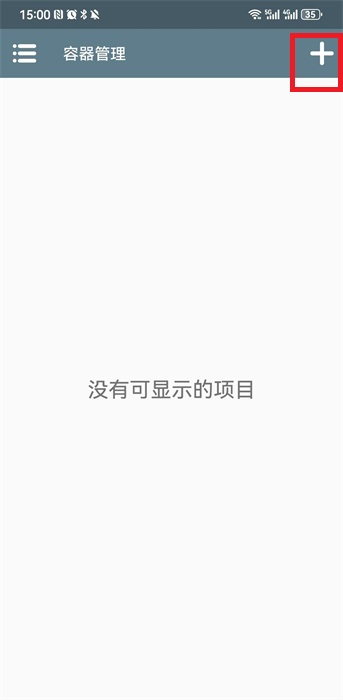 1、首先需要在本页面中下载安装包,下载的是一个windows模拟器,需要等待加载,加载完成之后就会进入到软件的界面中,在界面中点击右上角【+】去新建容器;