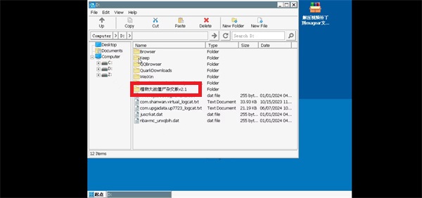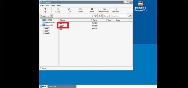 5、等待运行加载完成之后,就会进入到一个电脑桌面,拖动光标打开【D盘】进入到文件夹中;