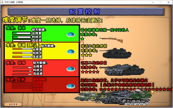 3、在难度选择界面,只需要选择想要体验的难度,点击难度栏【蓝色】按钮即可选中,选中之后这个账号就无法更改难度了,想要更改难度可以重新创建一个存档账号;