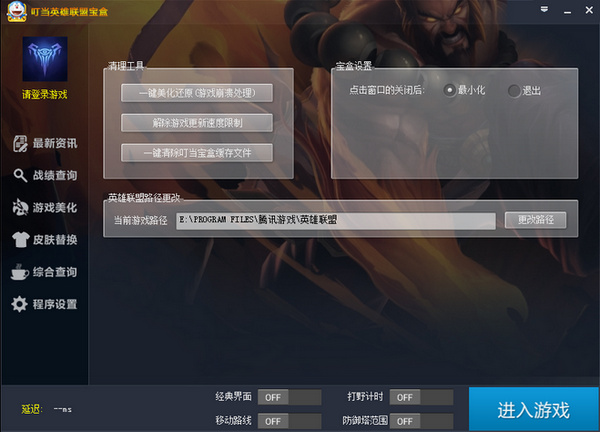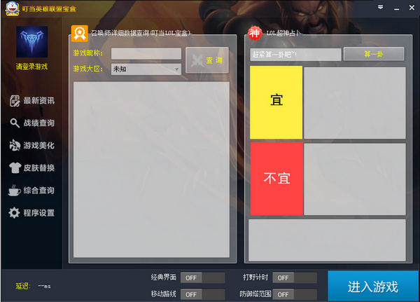 叮当英雄联盟宝盒是最新版的lol盒子,软件功能强大,为玩家提供皮肤更换、界面修改、隐藏分查询、字体美化等功能。软件完美兼容多玩LOL盒子、腾讯tgp助手,是玩《英雄联盟》的好助手,赶快下载体验吧!