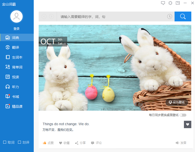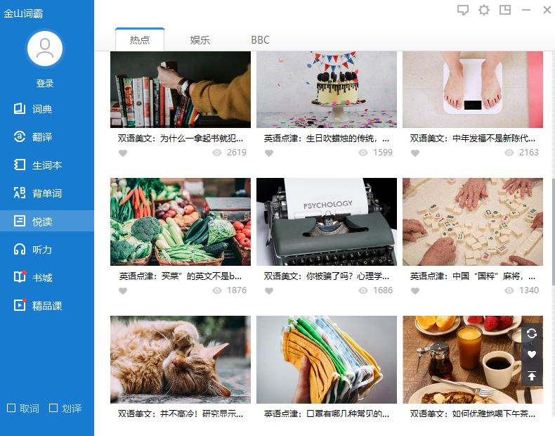 想要对不认识的单词随查随写又不想频繁切换窗口?右上角的词霸悬浮小窗随时待命,双击Alt也可以唤出它。