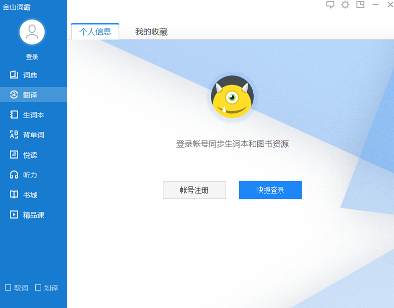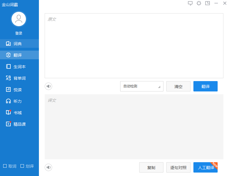 一、打开金山词霸,将页面左下角的【取词】勾选上。