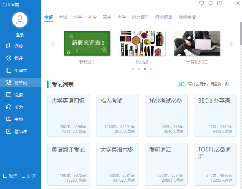 词霸实现了PC/网站/手机三平台数据同步,可以随时随地背单词。