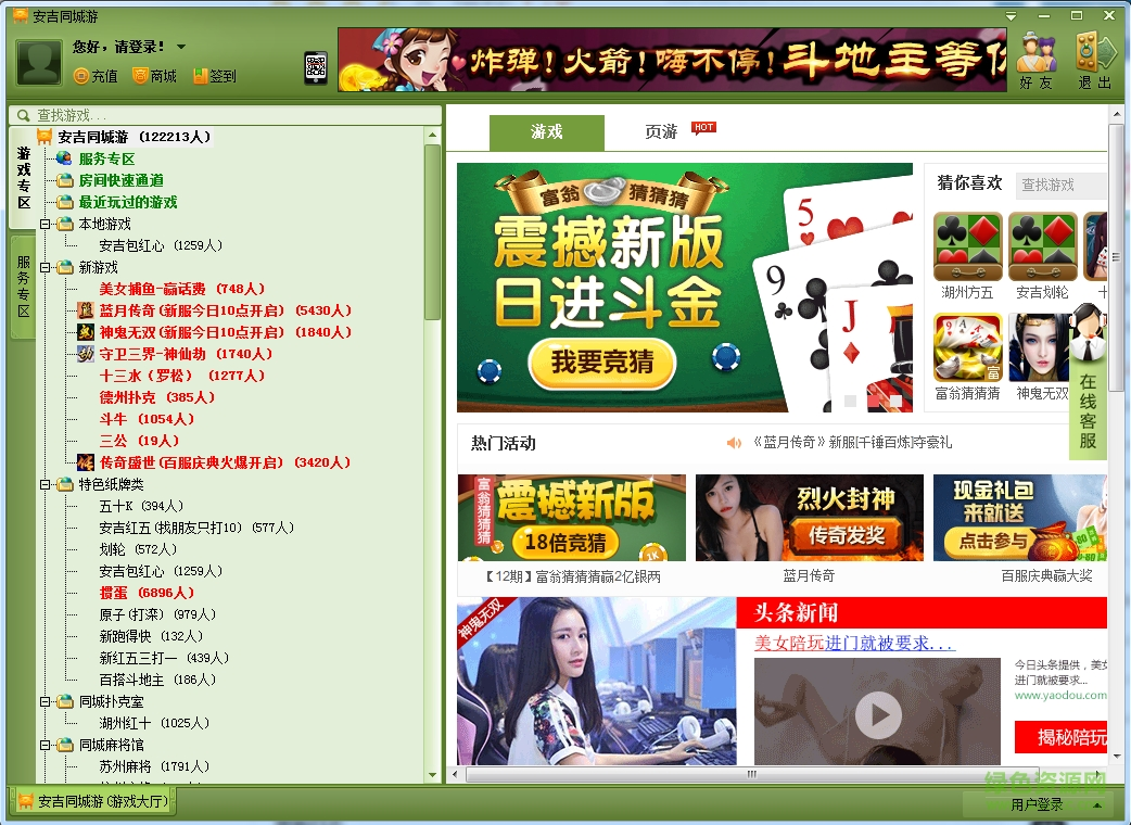 安吉同城游,安吉最地道的本地棋牌游戏平台,为您提供划轮、红五、安吉麻将、包红心等本地特色棋牌游戏下载,是安吉人打牌、交友的首选娱乐平台。安吉同城游提供极具本地特色的扑克和麻将等游戏,如:安吉包红心、安吉划轮等,吸引很多本地玩家齐聚本平台。另外,斗地主,诈金花,麻将、台球,军旗等等各种游戏资源。安吉的玩家们快来绿色资源网下载吧!