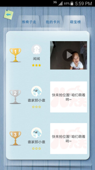 2.新增萌宝榜,上传萌宝照片、视频即有机会上榜