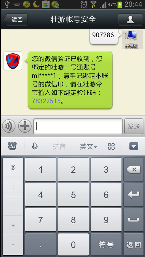 准备工作:由于绑定工作需要使用微信平台,所以请先下载微信,并扫描二维码收听公众帐号“壮游帐号安全”。
