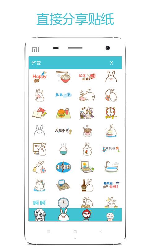 你可以见你的贴纸直接分享给你的小伙伴,让你的小伙伴们也一起互动起来,编辑组合好自己的照片直接保存分享给自己的朋友,让他们看看你的逗比的特效。