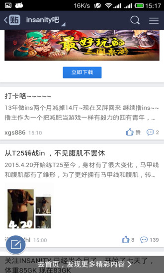 与Insanity吧友一起交流鼓励,让减肥更加有信心