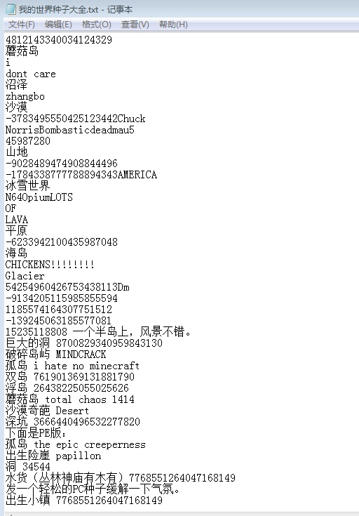 包含了蘑菇岛、沼泽、村庄、孤岛、双岛、沙漠、半岛、海岛、冰雪世界等....