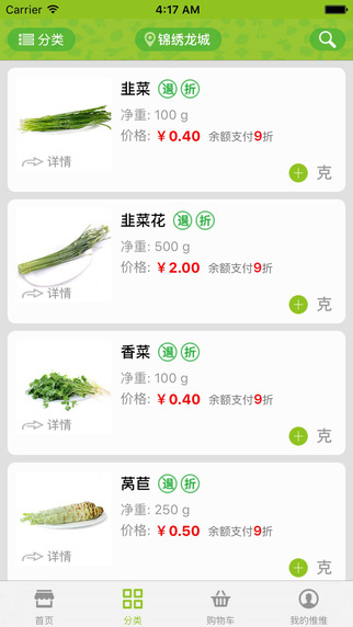 惟惟app是武汉本地生鲜平台惟惟网的手机客户端,主要是为广大的用户提供蔬菜、熟食、水产等生鲜菜品的在线购买,你无须出门购买,也不用在下班后慌张的跑去菜场选购不太新鲜的蔬菜,现在你只要下载这款软件,就可以直接在线下单,选好菜品,我们智能化的帮你安排配送,而且保证菜品的新鲜,赶快来下载使用吧!