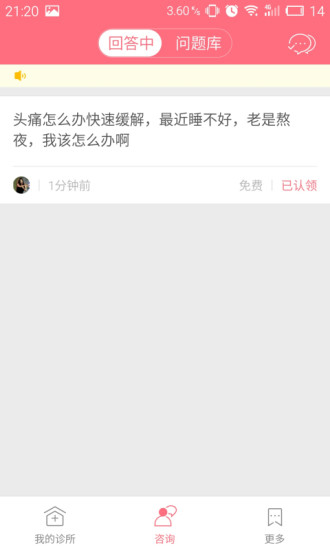 用户在线咨询的健康问题医生可自主选择,咨询信息处理“回复”及“未回复”一目了然。