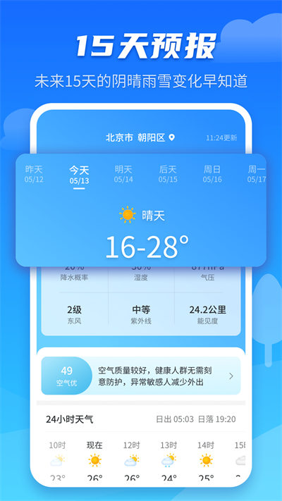 2.天气预报45天超长预报、48小时逐小时预报,陪你预见未来。