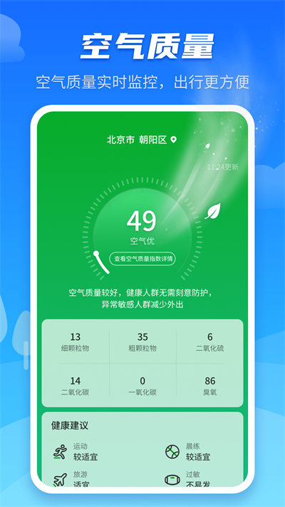 天气预报早知道第一时间知道天气的变化,摸清楚大自然的命脉,搞清楚他们的天气变化好的每天的气候如何发展,这样子自己出门就非常的有准备了,而且还有空气质量报告,每天都能知道最新的城市情况,喜欢就来绿色资源网下载吧!