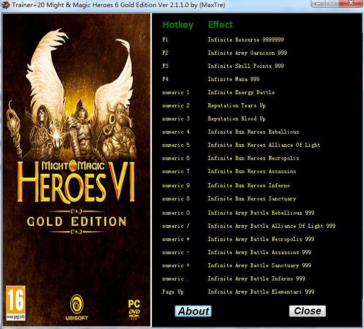 英雄无敌6修改器2.1.1是游戏《魔法门之英雄无敌Ⅵ》的一款辅助工具,对应的游戏版本为2.1.1。修改器使用简单,进入游戏后,打开修改器,按相应的功能键进行修改即可,非常方便。赶快下载体验吧!